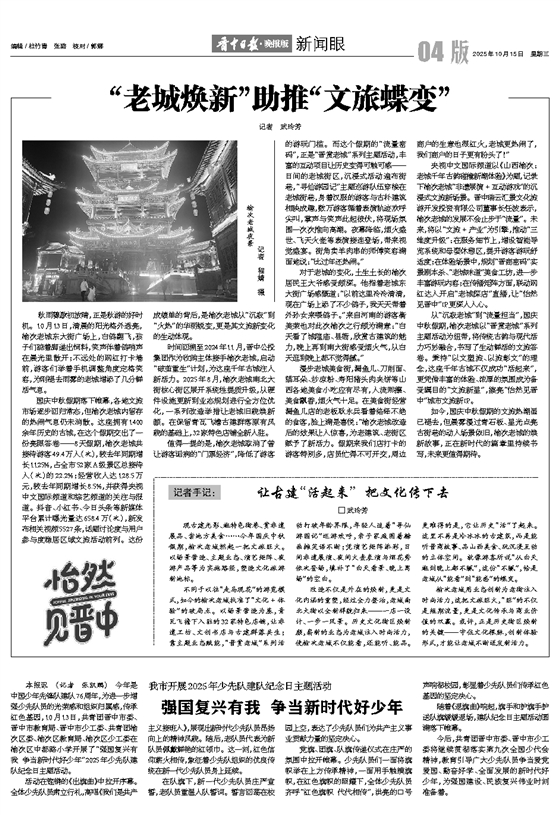 本报讯 (记者 张凯鹏) 今年是中国少年先锋队建队76周年,为进一步增强少先队员的光荣感和组织归属感,传承红色基因,10月13日,共青团晋中市委、晋中市教育局、晋中市少工委、共青团榆次区委、榆次区教育局、榆次区少工委在榆次区中都路小学开展了“强国复兴有我 争当新时代好少年”2025年少先队建队纪念日主题活动。