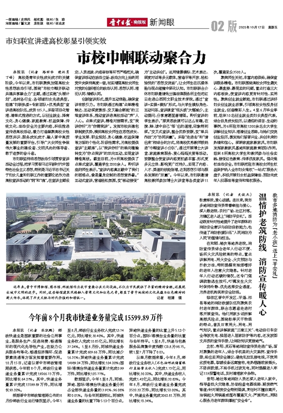 今年前8个月我市快递业务量完成15599.89万件