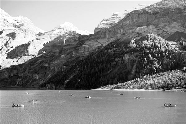 人们在瑞士伯尔尼州厄希嫩湖上泛舟