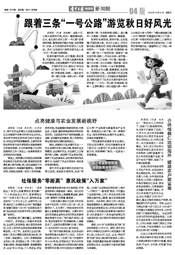 本报讯 (记者 张凯鹏) 金秋十月,三晋大地层林尽染,宛如一幅斑斓油画。近日,省文旅厅发布三条“一号公路”自驾旅游线路,邀请游客手握方向盘,去欣赏黄河、长城、太行沿线的自然奇观与人文胜迹。其中,左权麻田八路军总部旧址入选“太行一号公路”自驾线路。