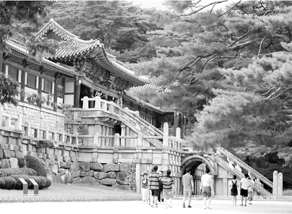 | 八月二日,游客在韩国庆州佛国寺参观游览。 新华社记者 姚琪琳 摄 |