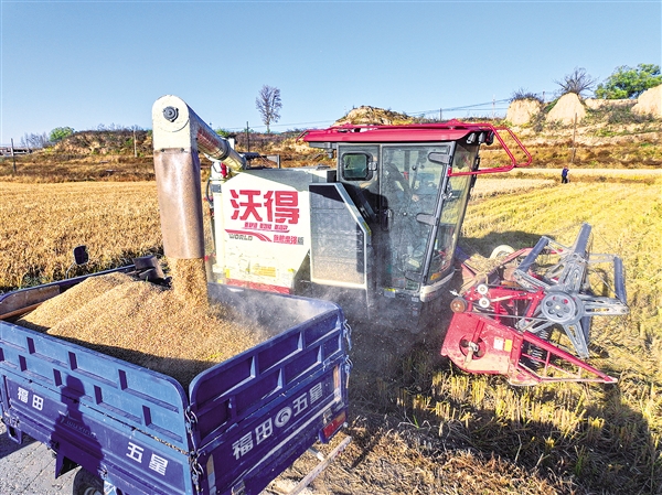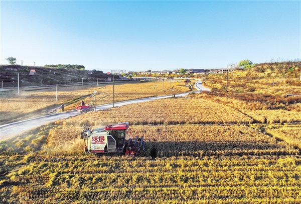 日前,农机手驾驶收割机在平遥县岳壁乡梁村源池稻田高效作业,抢收水稻,确保200亩水稻颗粒归仓。近年来,梁村注重农业资源集约利用,采取土地流转方式,与平遥县城乡融合公司合作,对水稻种植从育苗播种、管护收获、市场营销等环节实施科学、绿色、健康的种植和管护,促进增收增效。