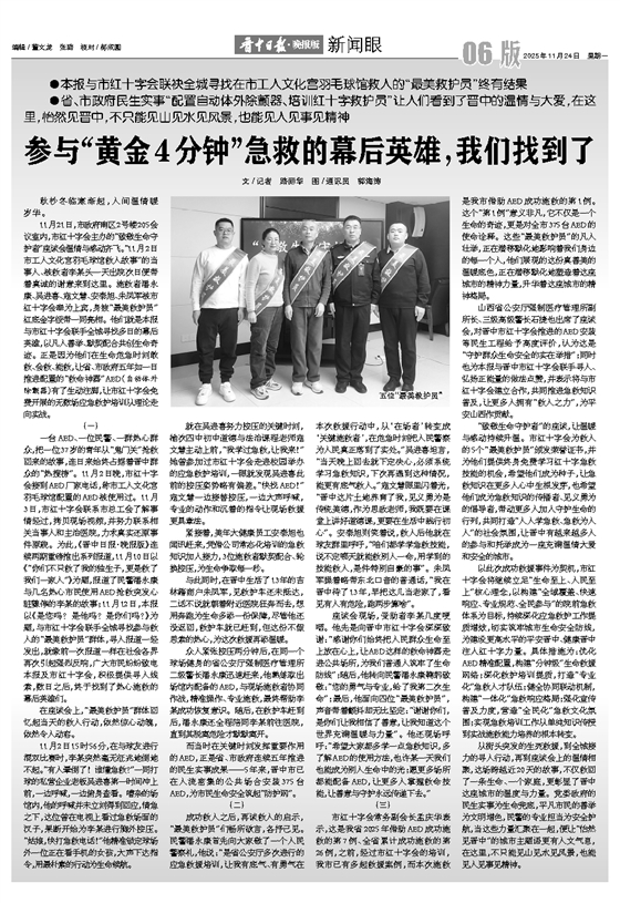 ●本报与市红十字会联袂全城寻找在市工人文化宫羽毛球馆救人的“最美救护员”终有结果