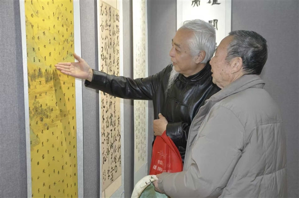 11月27日,介休市文化艺术中心文联展厅内,市民正在兴致勃勃地欣赏书法作品。当日,由介休市委宣传部、介休市文联主办,介休市文化事业促进会、介休市老年书画研究会承办的“晚霞映初心”主题展览吸引了众多市民观展,该展览将延续至12月17日。