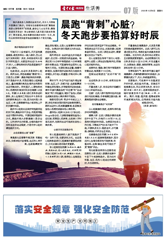 跑步是很多人热爱的运动方式,不少人习惯每天清晨出门跑步。但每当社会新闻中出现“晨跑者突发心源性猝死”的报道,就会让人心生不安:晨跑到底安不安全?有心脏病的人是不是只能放弃跑步?寒冬渐至,有没有最佳的跑步时间?今天,我们从科学研究和医学角度来解答几个常见问题。
