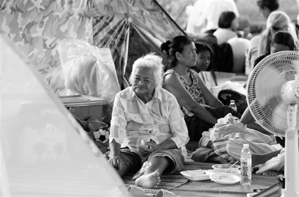 12月10日,民众聚集在位于泰国沙缴府的一处避难所。