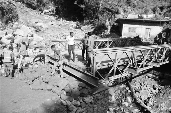 12月13日,在斯里兰卡巴杜勒地区,应急人员抢修受损桥梁。