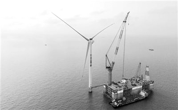 | 三峡江苏大丰800兆瓦海上风电项目机组。顾彦梁 摄 |