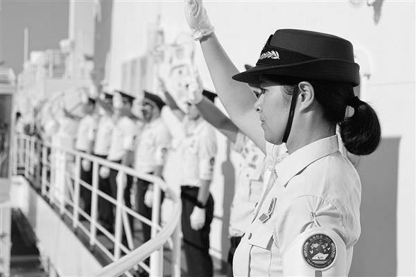 12月16日,中国海军“丝路方舟”号医院船驶离牙买加法尔茅斯港,医护人员分区列队向欢送人群告别。