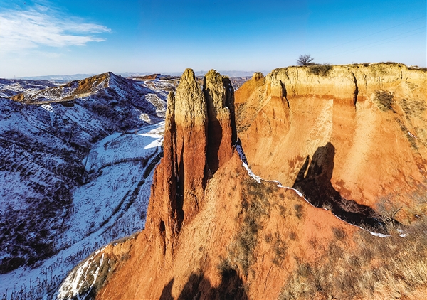 12月25日,榆社县的土林在暖阳的照射下呈现金黄、赤红的色彩,与洁白的冬雪相互交织,如同一幅流动的调色板,每一帧画面都定格成永恒的冬日限定美景。土林呈现的土柱、土崖、土台,千姿百态,造型各异,堪称鬼斧神工,展现着大自然原始而纯粹的创造力。通讯员 邢兰富 摄