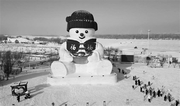 近日,继太阳岛“雪人先生”、群力音乐公园大雪人之后,又一巨型雪人在哈尔滨亮相。这个巨型雪人身高26米,位于哈尔滨外滩德嘉雪人码头冰雪景区。 新华社 刘洋 摄