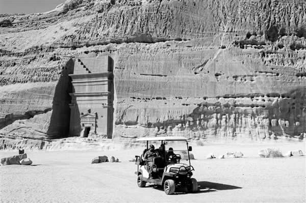 1月17日,游客在沙特阿拉伯欧拉游览石谷考古遗址。