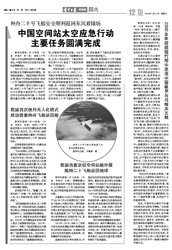 中国空间站太空应急行动 主要任务圆满完成