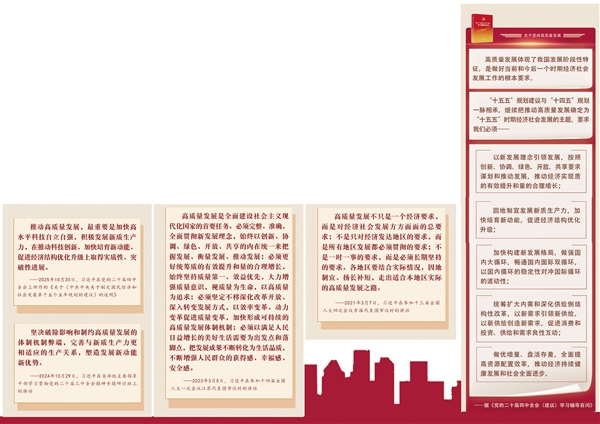 为了准确领会和把握这些重大原则,人民网·中国共产党新闻网“学习书签”栏目整理了习近平总书记的重要论述和《党的二十届四中全会〈建议〉学习辅导百问》学习资料。本期,本报转载第三个重大原则“坚持高质量发展”,与广大读者共同学习。