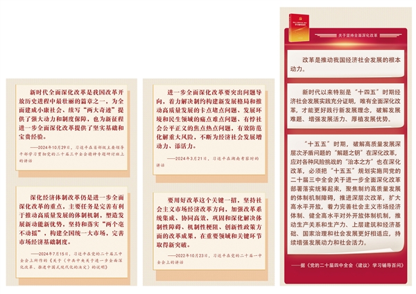为了准确领会和把握这些重大原则,人民网·中国共产党新闻网“学习书签”栏目整理了习近平总书记的重要论述和《党的二十届四中全会〈建议〉学习辅导百问》学习资料。本期,本报转载第四个重大原则“坚持全面深化改革”,与广大读者共同学习。