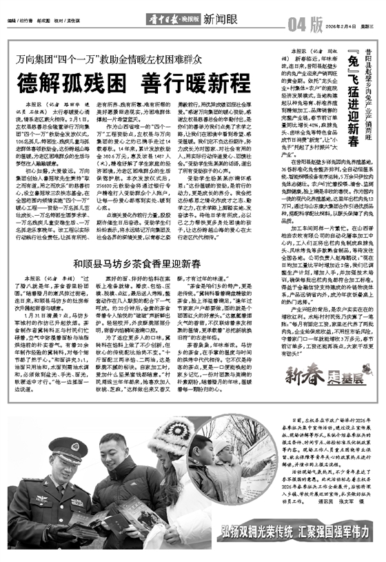 产业兴旺的背后,是农户实实在在的增收红利。水峪村村民张乃庆算了一笔账:“每月有固定工资,家里还代养了两批肉兔,企业给保底收益,不用担市场风险,守着家门口一年就能增收3万多元,春节前订单多,工资还能再涨点,大家干活更有劲头!”