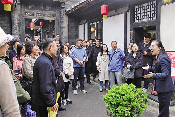 | “同心直通车·平遥站”,宣讲员李朝在日昇昌票号博物馆作沉浸式宣讲 |
