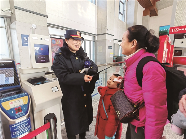出行脚步匆匆,服务始终暖心。丁洁与她的同事们始终以饱满的热情坚守岗位,用一次次细致检票、一声声贴心提醒、一次次主动帮扶,守护好旅客出行路。他们以责任与担当,保障列车准点出发、旅客安心前行,用坚守与奉献为春运增添温暖底色。