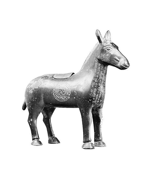 西周“盠”青铜驹尊,1955年出土于陕西眉县,现藏于国家博物馆。驹尊的造型生动,马的耳朵竖起,尾巴下垂,昂首站立,是当时贵族为了纪念受到了周王特殊赏赐而铸造的肖生器。器身上的铭文,讲述了在西周某年的十二月甲申日清晨,周王进行了隆重的执驹礼,将两匹马驹赏赐给一位名叫“盠”的贵族。按照规定,长到两岁的小马驹就要离开母马,接受训练役使。因此,执驹礼可以视为马驹的成年礼。执驹礼的背后有对马匹繁育的考量,典礼时间一般选择春夏两季,避免公马发情在牧群中伤害到小马驹和怀孕的母马。并且挑选两岁的马驹,保证马要到三岁完全成熟才可以进行交配,从优生优育的角度,增强种群的健康体质。