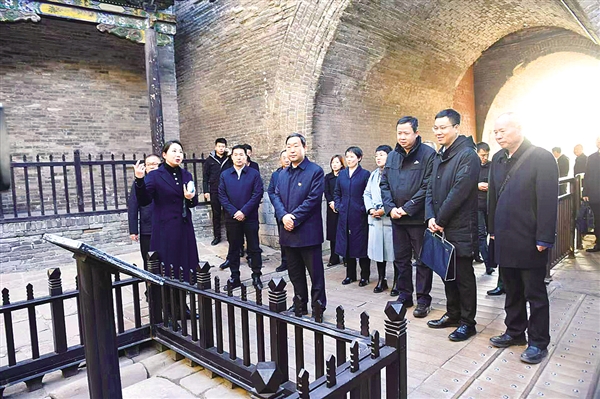 | 市委理论学习中心组成员在平遥古城迎薰门参观学习。 |