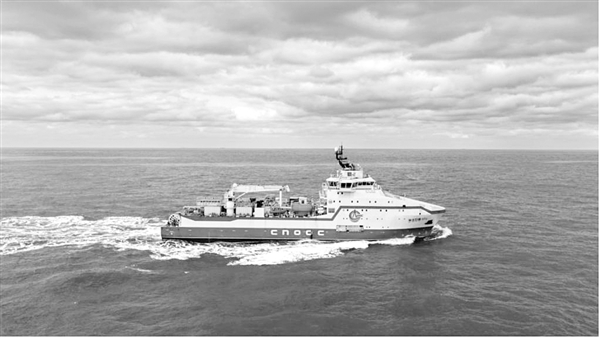 试航中的集成式大型压裂工程船“海洋石油696”。 受访单位供图