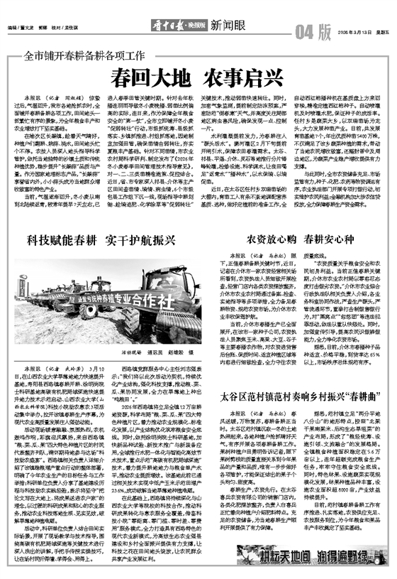 与此同时,全市农资储备充足、市场监管有力,种子、化肥、农药等物资调运有序,农业执法部门开展专项打假行动,切实维护农民利益;金融机构加大涉农信贷投放,全力保障春耕生产资金需求。