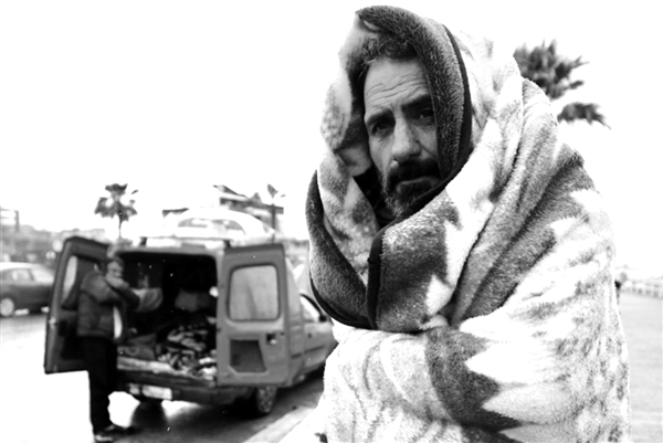 | 3月15日,在黎巴嫩南部赛达市附近的一条公路旁,一名黎巴嫩流离失所者用毯子御寒。新华社发(阿里·哈希绍 摄) |