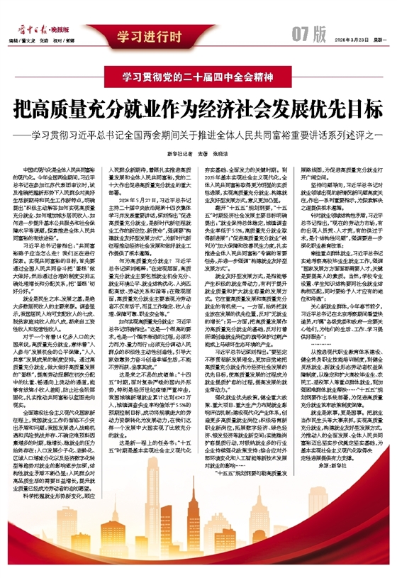 把高质量充分就业作为经济社会发展优先目标