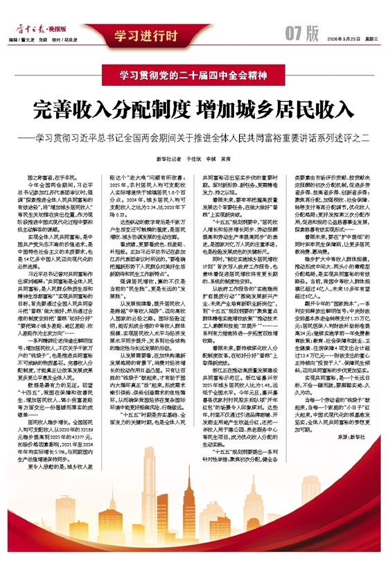完善收入分配制度 增加城乡居民收入