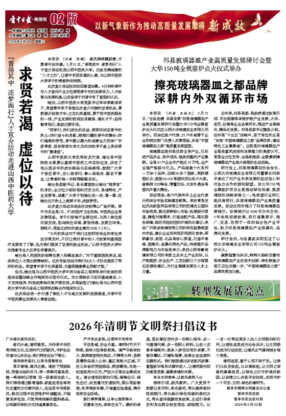 近年来,祁县县委、县政府通过政策引领、平台搭建等举措护航产业发展,大华、宏艺、红海等企业各展所长,推动产业高端化、精品化发展。祁县县委书记魏栋介绍,在祁县“十五五”战略中,居于首位的正是“发挥‘中国玻璃器皿之都’品牌优势,建设特色工业集聚地”。这既是对玻璃器皿产业强县富民成效和发展潜力的高度认可,更是全方位支持、全链条推进、全要素保障玻璃器皿产业做大做强的生动实践。