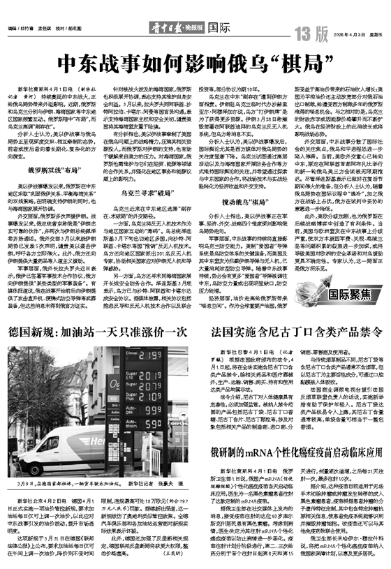 新华社莫斯科4月1日电 俄罗斯卫生部1日说,俄国产mRNA(信使核糖核酸)个性化癌症疫苗当天启动临床应用,医生为一名黑色素瘤患者注射了这款定制的mRNA疫苗。