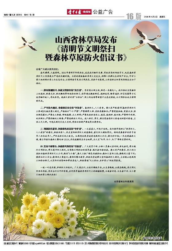 春风拂翠,又逢清明。2026年清明节即将来临,这是我们缅怀先辈、寄托哀思的传统节日,也是森林草原防灭火形势最为严峻的关键时期。为有效遏制森林草原火灾发生,保障人民群众生命财产安全,守护三晋大地的绿水青山与生态安全,让清明佳节更具文明底色、更添平安氛围,山西省林业和草原局特发出如下倡议: