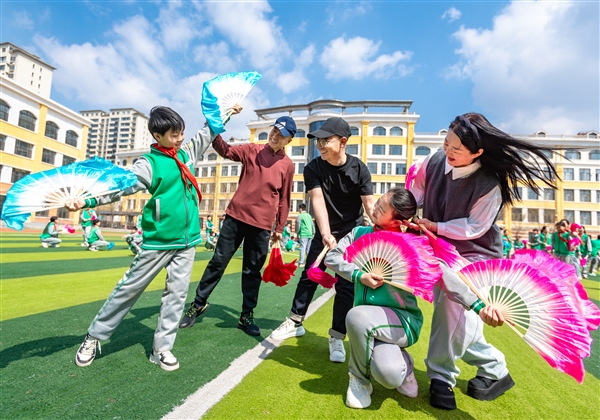 4月7日课间时分,在左权县示范小学的操场上,非遗传承人及教师们手把手向学生传授左权小花戏中“蝴蝶扇”“三颠步”等经典动作要领。这种沉浸式教学模式,让非遗传统技艺的种子在孩子们心中悄然扎根,生动展现了校园传承实践的丰硕成果。