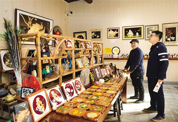 山西晋派砖雕第九代传承人温松荣的工坊内,砖雕、木雕等作品琳琅满目。“当地政府为我们提供了一座砖雕元素浓郁的古院子。”他表示,“希望借着太谷古城的人气与流量,更好地宣传砖雕文化,让前来游览的游客近距离感受传统工艺的独特魅力。”