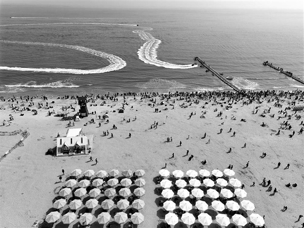①4月5日,游客在江苏省连云港市连岛景区大沙湾海滨浴场休闲游玩。
