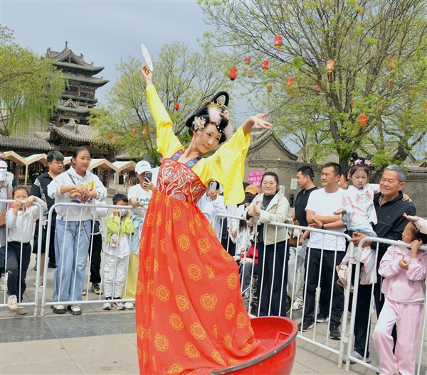 4月19日,农历三月初三,上巳节,榆次老城春意融融、游人如织。文庙前,不倒翁仙子衣袂翩跹,舞姿灵动,为春日的榆次老城增添了浓墨重彩的民俗文化气息,尽显烟火气与文化韵致。