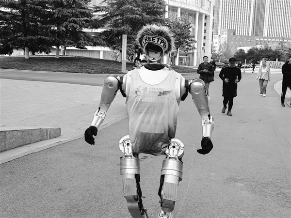 | 山东优宝特智能机器人有限公司研制的人形机器人“行者泰山”进行马拉松训练。新华社发 |