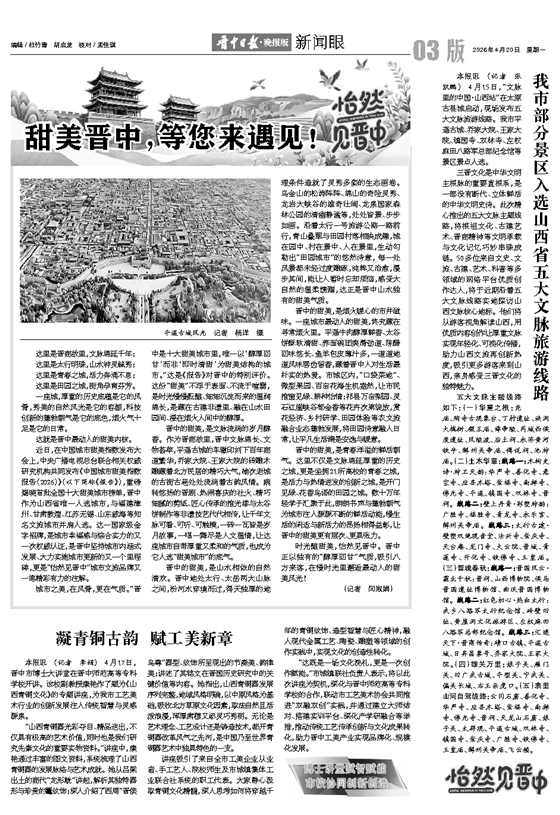 我市部分景区入选山西省五大文脉旅游线路